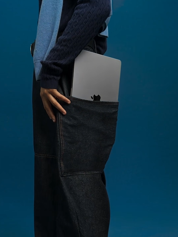 13인치에 2.7파운드(약 1.23킬로그램). 숫자만으로는 체감하기 어려운 스펙이죠. 애플은 이 가벼움을 장황하게 설명하는 대신 훨씬 직관적인 방식으로 보여줬습니다. 스마트폰을 넣듯 바지 뒷주머니에 맥북 네오를 쿨하게 꽂아 넣어 이 노트북이 어떤 포지션의 제품인지 단번에 각인시키죠.