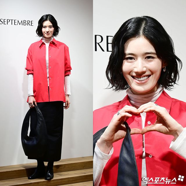 10일 오후 서울 한남동 르셈템버 플래그십 스토어에서 오픈 기념 포토콜 행사가 진행됐다. 이날 행사에 참석한 정은채는 강렬한 레드 컬러가 돋보이는 셔츠로 시선을 사로잡았다. 채도가 높은 레드 컬러 셔츠 안에 화이트 터틀넥을 레이어드한 뒤 셔츠 소매를 걷어 올려 포인트를 더했다.