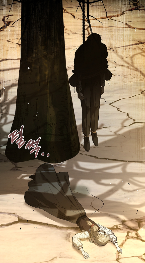 나무에 묶였고, 여자는 본능적으로 남자의 몸을 붙잡고