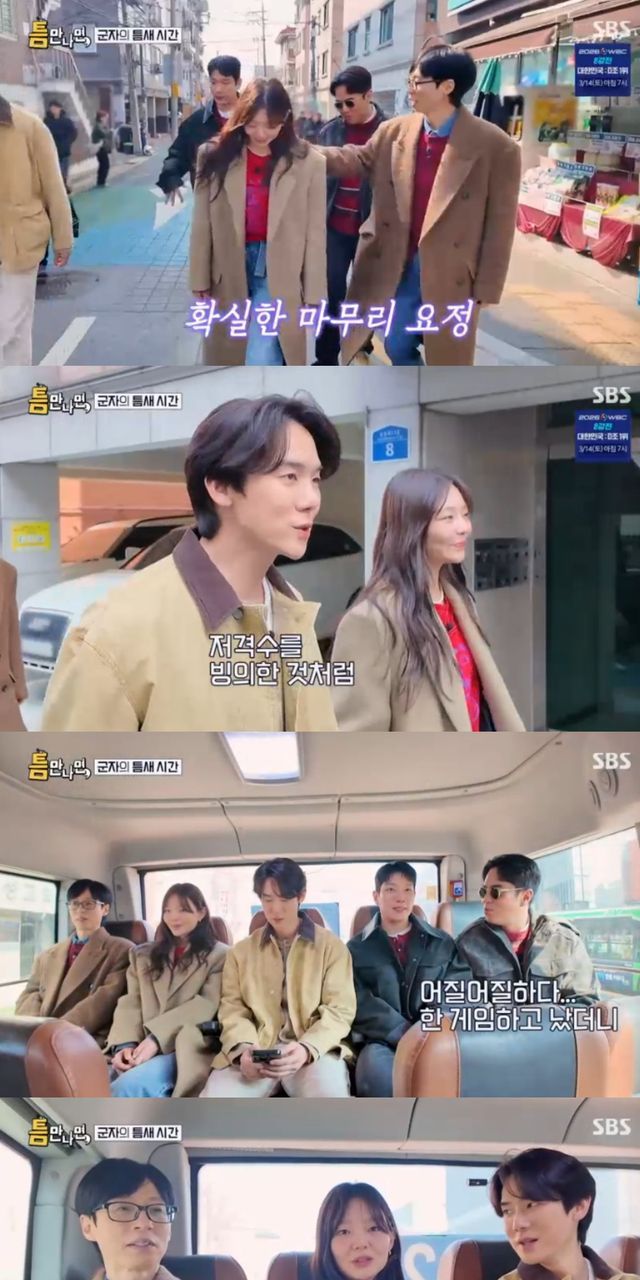 10일 방송된 SBS 예능 프로그램 '틈만 나면, 시즌4'에서는 '틈 친구'로 배우 이솜, 김경남, 전석호이 출연해 유재석, 유연석과 함께 군자동을 찾아 '틈 주인'에게 행운을 선물했다.