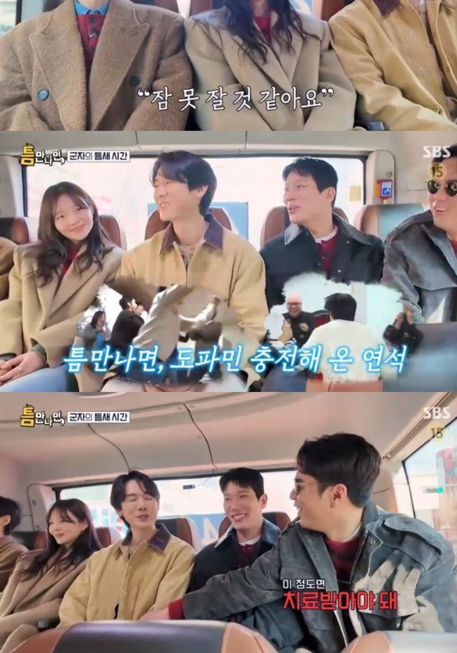 유연석은 "드라마 촬영하고 잠도 별로 못자고 '틈만나면' 촬영을 와도 도파민 때문에 별로 안 피곤하다"면서 웃었고, 김경남은 "촬영장에서도 ('틈만나면'에서 나온) 게임을 하지 않았냐"고 전했다.