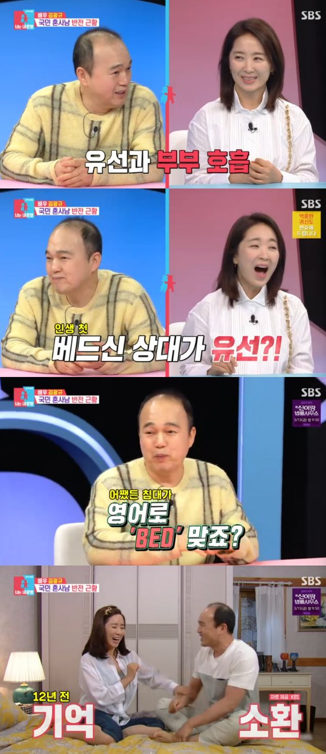 이어 김광규는 윤유선과 12년 전 드라마 '참 좋은 시절'에서 닭살부부로 호흡을 맞췄다면서 윤유선과 인생 첫 베드신을 찍었다고 말해 궁금증을 유발했다.