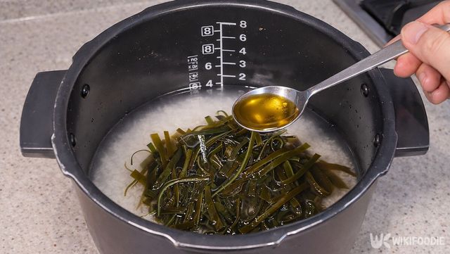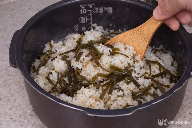 쌀을 깨끗이 씻어 밥솥에 안친 뒤, 평소보다 물양을 아주 조금 적게 잡는다. 다시마에서 수분이 나오기 때문이다. 그 위에 불려둔 다시마 채를 고르게 펴서 올린다.