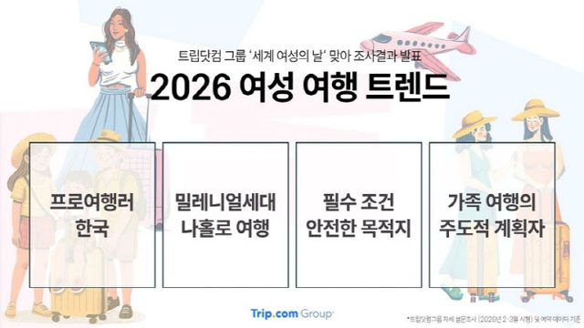 원스톱 글로벌 여행 플랫폼 트립닷컴을 운영하는 트립닷컴 그룹은 ‘세계 여성의 날’을 기념해 한국, 일본, 홍콩, 영국, 독일, 태국, 싱가포르 등 주요 지역 여성 3500명을 대상으로 실시한 설문조사(2026년 2~3월 시행) 및 자체 예약 데이터 분석 결과를 발표했다.
