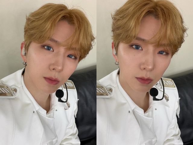사진 속 기현은 금발 헤어스타일에 푸른 컬러 렌즈를 착용한 채 카메라를 바라보고 있다. 무대용 화이트 의상을 입고 이어 모니터와 마이크 장비를 착용한 모습으로 공연을 앞둔 순간의 분위기를 전했다. 특히 또렷한 이목구비와 부드러운 눈빛이 어우러지며 마치 동화 속 왕자님을 떠올리게 하는 비주얼을 완성했다. 금발과 푸른 눈의 조합이 신비로운 분위기를 더하며 팬들의 감탄을 자아냈다.