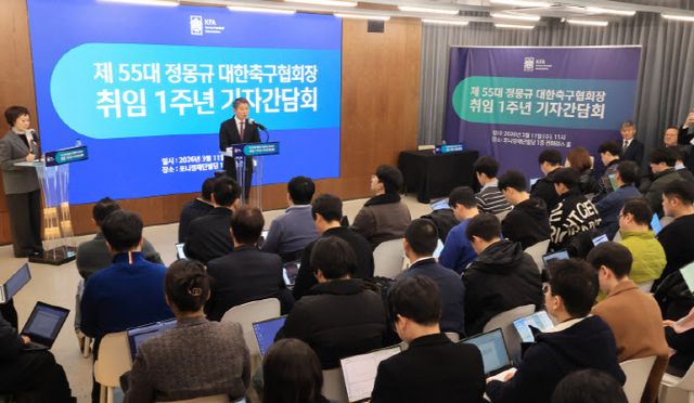 대한축구협회는 11일 서울 종로구 포니정재단 콘퍼런스홀에서 제55대 정몽규 대한축구협회장 취임 1주년 기자 간담회를 개최했다.
