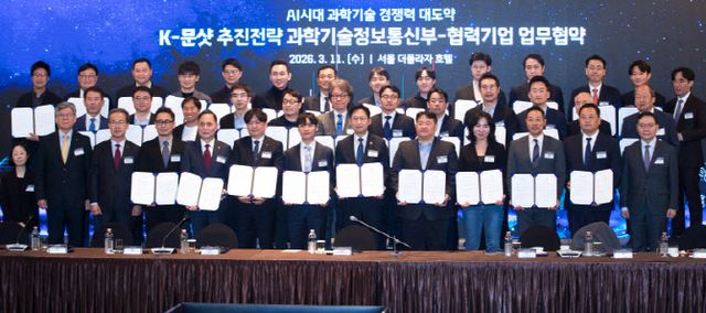 11일 서울 더플라자 호텔에서 열린 ‘K-문샷 협력기업 업무협약식’을 통해 이같은 범국가 프로젝트가 시작을 알렸다. ‘K-문샷 추진전략’은 AI와 과학기술을 융합해 국가 핵심 미션을 해결하고 과학기술 혁신을 가속화하기 위해 마련됐다.