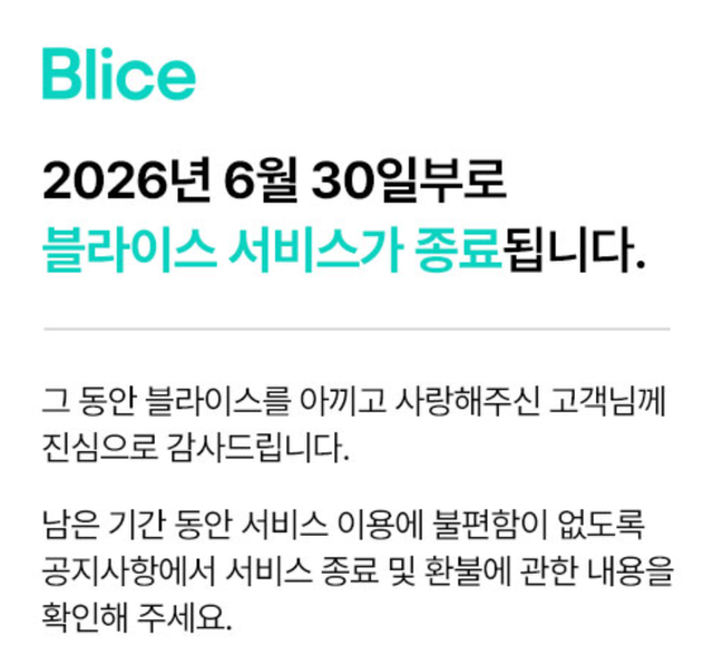 KT의 웹소설 및 웹툰 플랫폼인 블라이스가 사업 환경의 변화로 인해 2026년 6월 30일부로 서비스를 종료한다. 2018년 작가가 직접 작품을 등록하고 판매하는 오픈 플랫폼으로 첫발을 내디딘 지 약 8년 만에 운영을 중단하게 된 것이다. 블라이스 측은 그동안 함께해 준 고객들에게 감사를 표하며, 서비스 종료일까지 안정적인 이용 환경과 원활한 환불 절차를 제공하기 위해 최선을 다하겠다고 밝혔다.