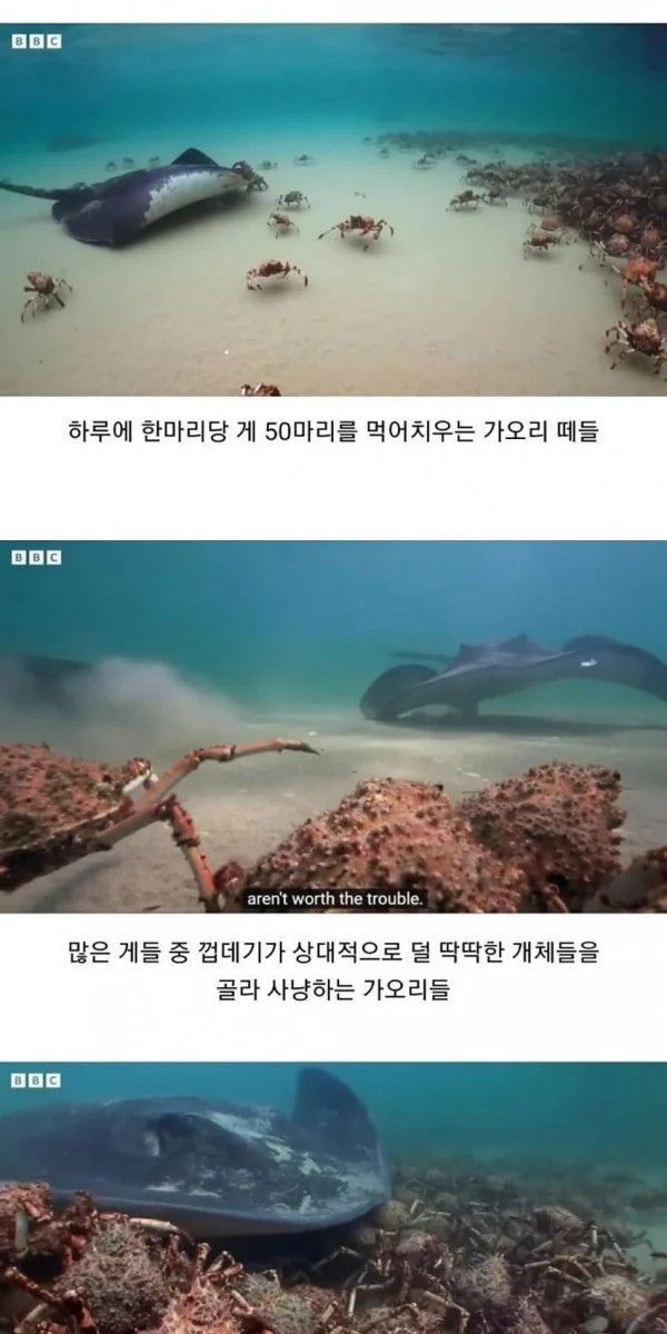 아니다, 저 지방에서 주로 잡히던 게들은 마치 개미처럼 "무리를 이뤄 포식자로부터 어린 개체들을 보호" 하는 습성이 있었는데,