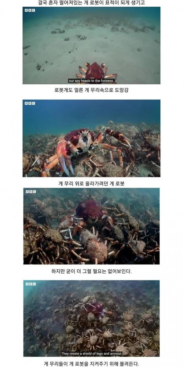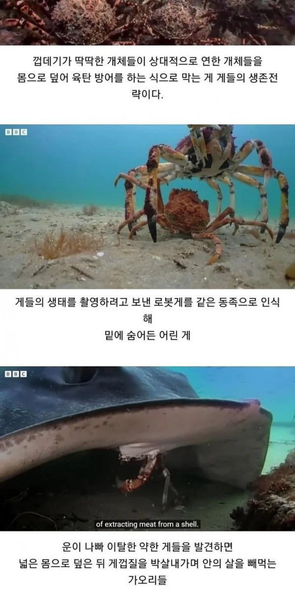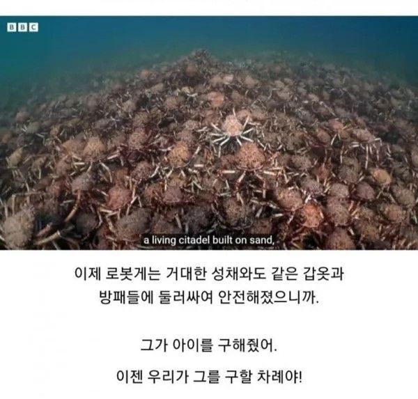 게들이 씹 이기주의자 새끼들이라 다른 게들 깔아뭉개면서 탈출 못하게 막은게 아니라 이들을 보호해주려고 아랫쪽으로 밀어보냈다는 소리임.