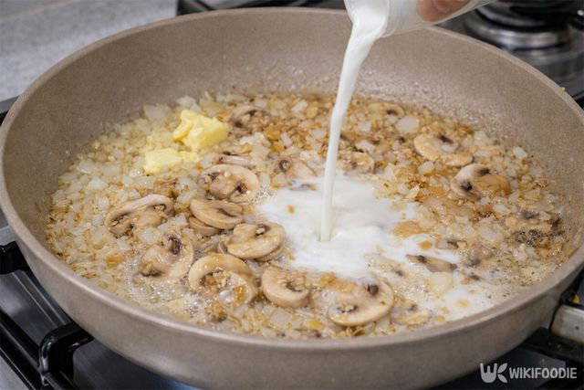 먼저 달군 팬에 버터를 두르고 다진 마늘과 잘게 썬 양파를 볶는다. 마늘이 타지 않게 약한 불에서 천천히 익히며 향을 뽑아내는 것이 요령이다. 양파가 투명하게 익으며 단맛이 올라오면 우유 200ml를 붓는다.