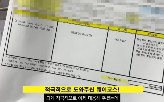 컴튜버가 유통사에 문의함