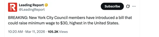 뉴욕시 의회에서 최저임금을 시간당 30달러(약 44,280원)까지 인상하는 획기적인 법안이 발의되었습니다.