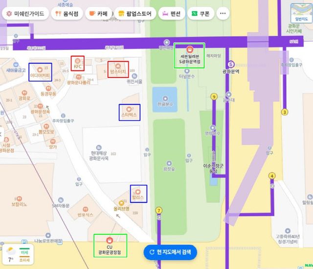 12일 관련 업계에 따르면, 광화문과 시청까지 이어지는 인근 상권에만 편의점 주요 3사를 비롯한 외식 및 커피 프랜차이즈 매장 수는 수십개다. 이들 점포는 공연 전후 현장 소비 수요 대응에 집중하고 있다.
