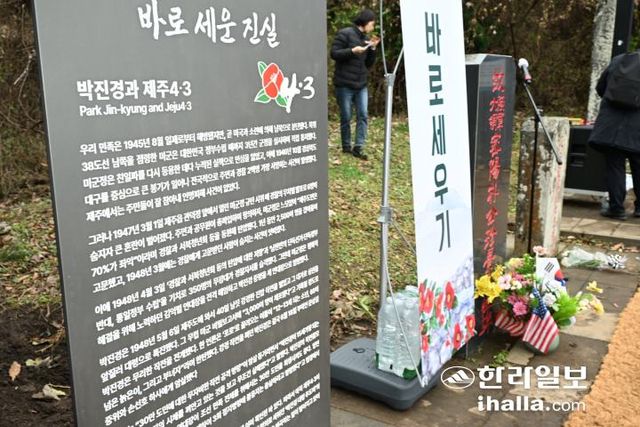 고 박진경 대령 추도비 바로 옆에 설치된‘바로 세운 진실’ 안내판. 한라일보DB