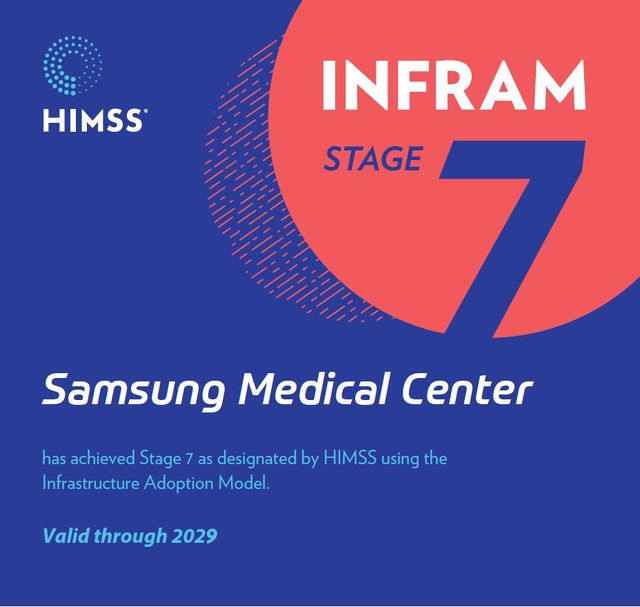 삼성서울병원은 미국보건의료정보관리시스템협회(HIMSS)가 주관한 INFRAM(Infrastructure Adoption Model) 7단계를 재인증 받았다고 밝혔다. 2022년 세계 최초로 INFRAM 7 인증을 획득한 지 3년 만이다.