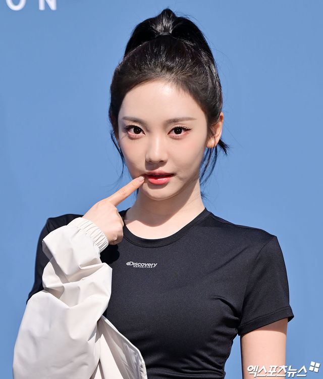 12일 오전 서울 한남동에서 ‘액티브 웰니스 라이프스타일' 포토콜 행사에 참석한 에스파 닝닝은 블랙 애슬레저 부츠컷 팬츠에 아웃도어 크롭 재킷을 매치해 등장했다.