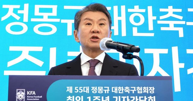 정몽규 대한축구협회장이 홍명보호의 2026 북중미 월드컵 16강 이상 진출에 자신감을 내비쳤다.