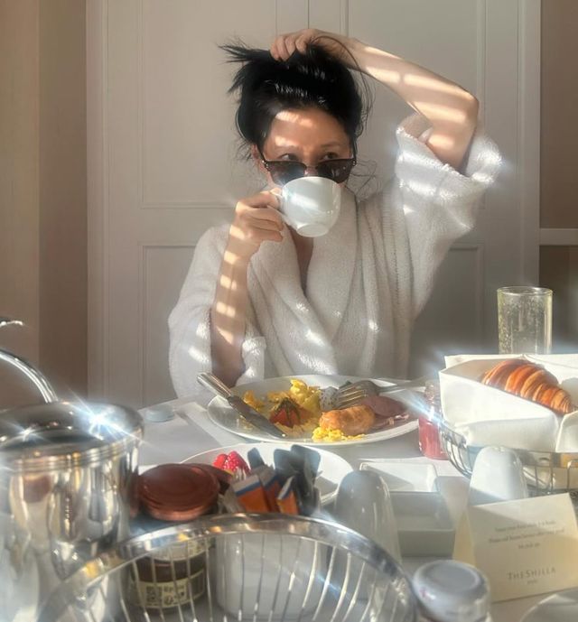 이영애는 12일 자신의 SNS를 통해 호텔에서 보낸 다채로운 순간들을 담은 사진 여러 장을 게재했다. 사진 속 이영애는 순백의 샤워 가운을 걸친 채 아침 식사를 즐기거나 스킨케어에 집중하는 모습. 선글라스를 끼고 커피를 마시는 모습에서는 일상조차 화보로 만드는 독보적인 아우라가 느껴진다.