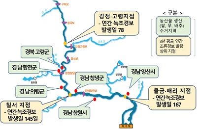 (그림 : 조사대상 지역은 그간 조류경보 발령이 잦은 지역 중 시민사회 의견을 수렴하여 선정)