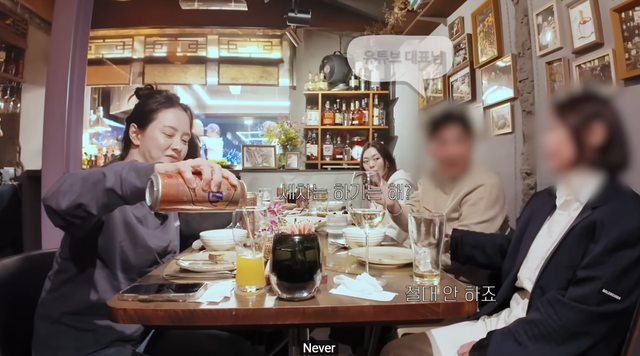 12일 송지효 유튜브 채널 ‘지효쏭’에는 ‘송지효 회식 자리 엿보기 feat. 데이비드 리’라는 제목의 영상이 공개됐다. 영상에는 송지효가 절친한 셰프 데이비드 리의 식당에서 직원들과 회식을 하는 모습이 담겼다.