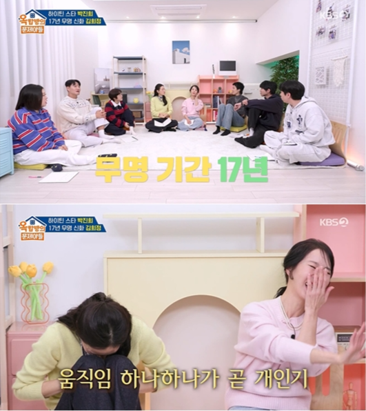 12일 방송된 KBS2 ‘옥탑방의 문제아들 시즌2’에는 배우 김희정과 박진희가 출연해 송은이, 김숙, 김종국, 홍진경, 양세찬, 주우재와 함께 퀴즈와 토크를 펼쳤다.