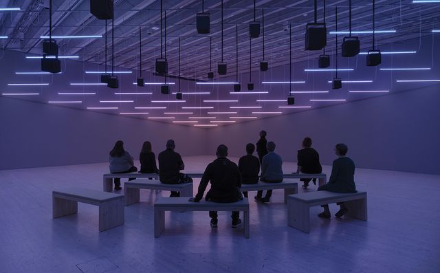 2024년 바르셀로나 ‘마니페스타’에서 선보인 ‘Every Thing Eats Light’는 문을 닫은 화석연료 발전소 안에 스테인드글라스 창을 설치했습니다. 창에는 태양빛을 에너지로 전환하는 세포인 엽록체의 진화를 기념하며, 녹색식물의 먼 조상과도 같은 해조류 화석의 형상을 담았죠. 시간에 따라 움직이는 해조류의 그림자가 공간을 채우면서 이 장소가 지닌 환경적 기억과 생태 위기 속 인간이 스스로를 어떻게 바라봐야 하는지 상기시킵니다. 또한 ‘Machine Auguries’ 시리즈에서는 특정 지역을 상징하는 새들의 울음소리를 학습한 인공지능을 통해 각 지역 고유의 ‘새벽 합창(dawn chorus)‘ 소리를 만들어냈어요. 새벽 합창이란 봄과 초여름, 새들이 짝을 찾고 자신의 영역을 알리기 위해 함께 내는 소리입니다. 물론 전시 공간에서 기계가 만든 합창은 실제 자연 소리의 경이로움에 비할 바는 아니지만, 그 인공적 소리가 우리로 하여금 자연을 어떻게 이해하고 대하는지 돌아보게 하죠. 이 작품은 빛과 소음 공해 등 인간의 활동으로 개체 수가 급감하고 있는 조류의 현실을 드러냅니다.