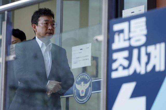 음주운전을 시인한 배우 이재룡이 10일 오후 서울 강남경찰서 교통조사계에서 피의자 신분으로 조사를 받은 뒤 밖으로 나오고 있다. 이 씨는 지난 6일 오후 11시쯤 서울 지하철 9호선 삼성중앙역 인근에서 차량을 몰다 중앙분리대를 들이받고 도주한 혐의를 받는다. / 뉴스1