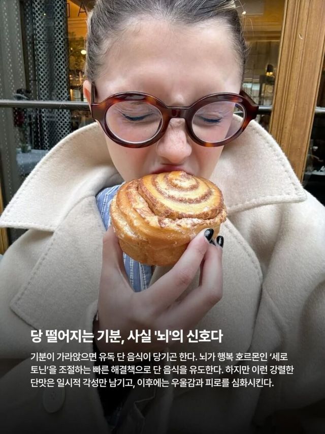 기분이 가라앉으면 유독 단 음식이 당기곤 한다. 뇌가 행복 호르몬인 ‘세로토닌’을 조절하는 빠른 해결책으로 단 음식을 유도한다. 하지만 이런 강렬한 단맛은 일시적 각성만 남기고, 이후에는 우울감과 피로를 심화시킨다.