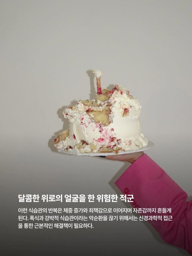 이런 식습관의 반복은 체중 증가와 죄책감으로 이어지며 자존감까지 흔들게 된다. 폭식과 강박적 식습관이라는 악순환을 끊기 위해서는 신경과학적 접근을 통한 근본적인 해결책이 필요하다.