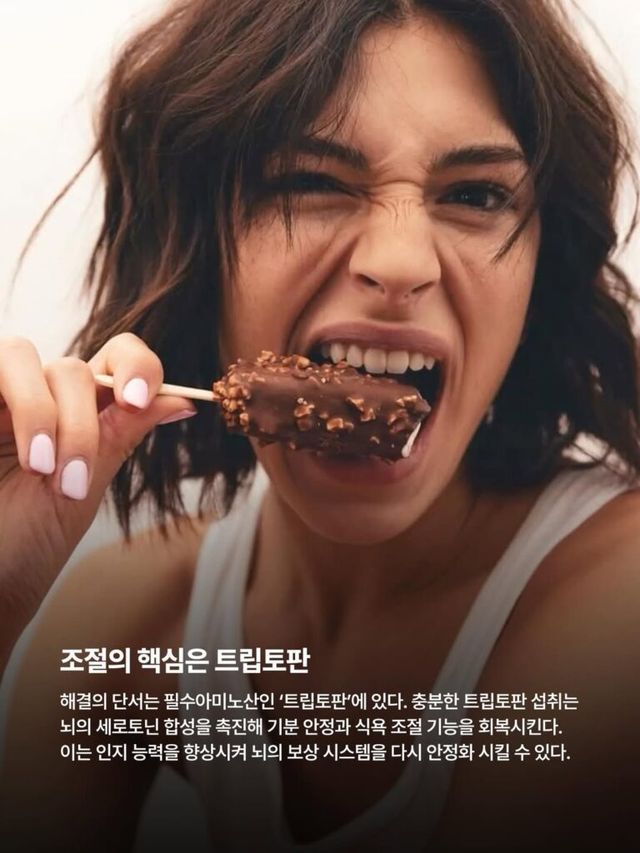 해결의 단서는 필수아미노산인 ‘트립토판’에 있다. 충분한 트립토판 섭취는 뇌의 세로토닌 합성을 촉진해 기분 안정과 식욕 조절 기능을 회복시킨다. 이는 인지 능력을 향상시켜 뇌의 보상 시스템을 다시 안정화 시킬 수 있다.