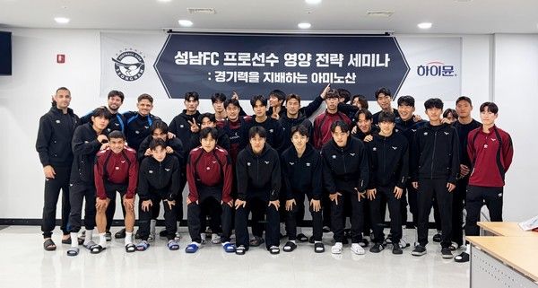 13일 성남FC는 보도자료를 통해 "지난 12일 성남축구센터에서 프로팀 선수단과 코칭스태프 등 총 50여 명이 참석한 가운데 ‘아미노산 영양 전략 세미나’를 개최했다"라고 밝혔다.