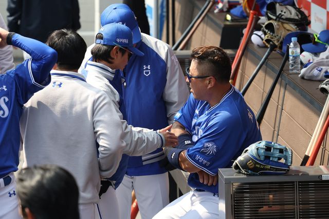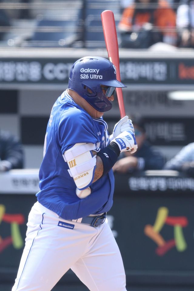 (엑스포츠뉴스 대전, 김지수 기자) 시범경기 첫 타석에서 사구를 맞은 삼성 라이온즈의 리빙 레전드 최형우가 다행히 큰 부상을 피해갔다.