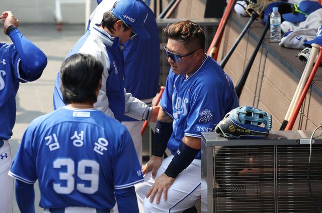 박진만 삼성 감독은 13일 대전 한화생명 볼파크에서 열리는 2026 KBO 시범경기 한화 이글스전에 앞서 "최형우는 전날 몸에 맞는 공 이후 큰 문제는 없다. 단순 타박이다"라면서도 "최형우는 타박상이니까 정규시즌 중이라면 출전해도 괜찮지만 지금 시기에는 몸 관리, 조절을 해야할 시기이기 때문에 오늘은 휴식을 줬다"고 말했다.