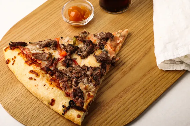 소고기 특성상 생으로 피자위에 올려서 구우면 욱즙이 나와