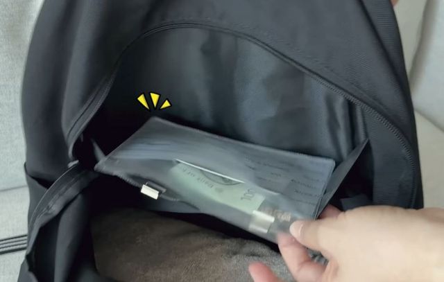 가방 안쪽에 집게 스테이플러 등으로 고정해 자투리 포켓으로 활용하기. / 유튜브 '미니멀리스트 Paik'