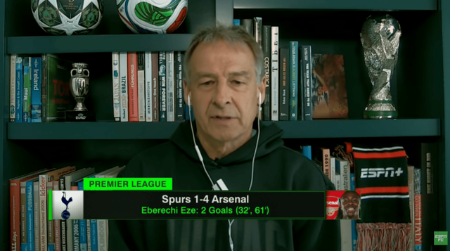 'ESPN'은 12일(한국시간) "과거 토트넘 홋스퍼에서 공격수로 활약했던 위르겐 클린스만이 이고르 투도르 감독을 향한 압박이 커지고 있는 가운데 친정팀 감독을 맡을 가능성을 배제하지 않았다"고 전했다.