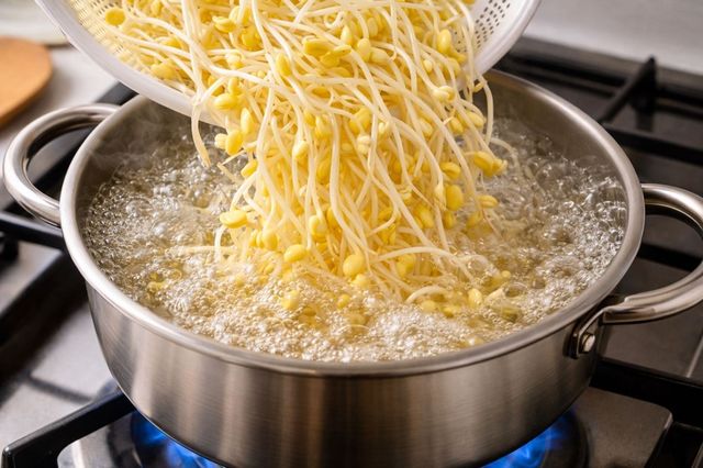 끓는 물에 콩나물을 넣는 모습. 기사 이해를 돕기 위해 AI를 활용해 제작한 자료 사진입니다. 실제 모습과 다소 차이가 있을 수 있습니다.
