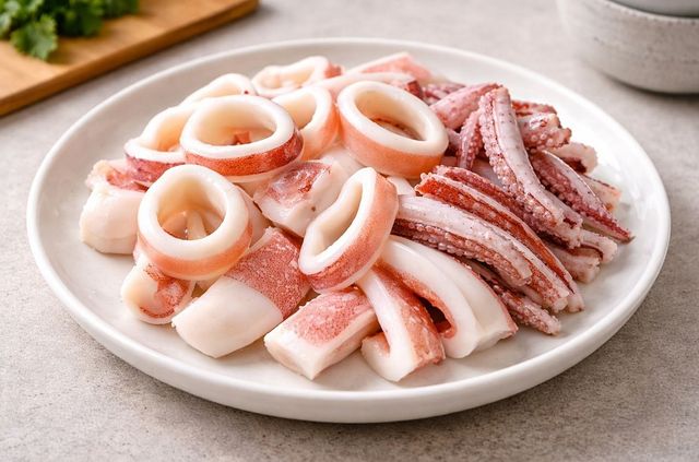 콩나물국에 넣기 위해 먹기 좋은 크기로 손질한 오징어 모습. 기사 이해를 돕기 위해 AI를 활용해 제작한 자료 사진입니다. 실제 모습과 다소 차이가 있을 수 있습니다.