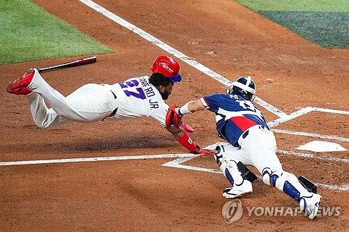 2회말 선두타자 블라디미르 게레로 주니어의 볼넷, 매니 마차도의 좌익수 뜬공으로 만들어진 1사 1루에서 주니어 카미네로가 낮은 변화구를 공략해 좌익선상 장타성 타구를 날렸다. 주자 게레로 주니어가 3루를 돌아 무리하게 홈 베이스를 노렸는데, 김주원의 송구가 정확하게 도착하지 않으면서 도미니카공화국이 선취점을 뽑아냈다.