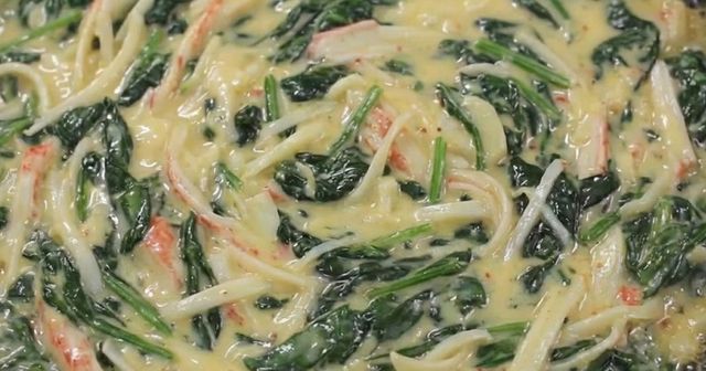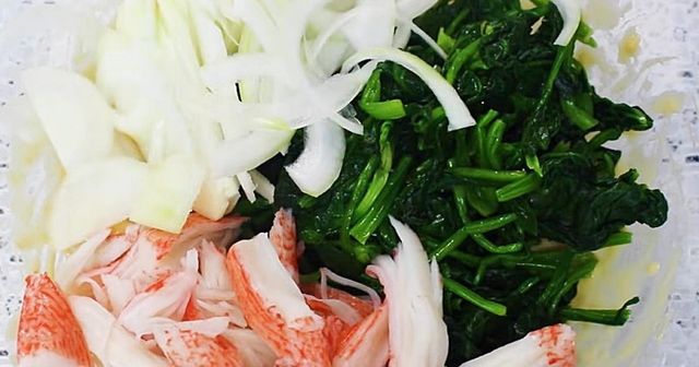여기에 크래미와 양파를 함께 넣으면 풍미가 한층 더 살아난다. 크래미는 잘게 찢어 넣고, 양파는 얇게 채 썰어 넣으면 좋다. 크래미의 부드러운 감칠맛과 양파의 은은한 단맛이 시금치와 잘 어울리면서 전의 맛을 더욱 풍성하게 만들어 준다.