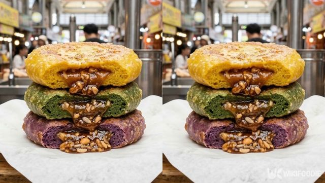 충청남도 아산의 한 전통시장에는 눈에 띄는 간식 가게가 있다. 노란색, 초록색, 보라색으로 구워지는 삼색 호떡 때문이다. 이곳에서 27년째 호떡을 만들고 있는 윤해경 씨는 단호박, 시금치, 복분자 같은 재료로 반죽에 색을 입혀 시장의 명물로 자리 잡았다.