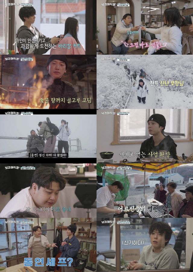열심히 일한 박보검, 이상이, 곽동연은 첫 휴무일을 맞이해 덕유산으로 향했다. 눈이 쌓인 가파른 길과 거센 바람, 추위를 뚫고 목적지인 중봉에 무사히 다녀온 이들은 백숙으로 알차게 몸 보신을 했다. 무엇보다 대형 면허를 취득해 전국을 누비자는 이야기를 시작으로 메이크업, 조경 등 ‘보검 매직컬’의 영역 확장 아이디어를 제시하며 상상의 나래를 펼쳐 흥미를 고조시켰다.