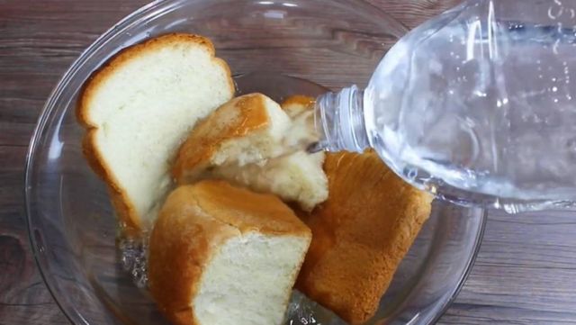 첫 번째 조리 단계는 식빵의 조직을 완전히 해체하는 파격적인 공정이다. 큰 그릇에 식빵을 담고 생수를 식빵이 충분히 잠길 정도로 붓는다. 이후 장갑을 착용한 뒤 손으로 식빵을 물에 완전히 풀어준다. 식빵이 적당히 풀리면 물기를 최대한 강하게 짜서 다시 그릇에 담는 과정이 필수적이다. 이 과정에서 식빵 특유의 부드러운 전분기가 응집되어 반죽의 기초가 형성된다.