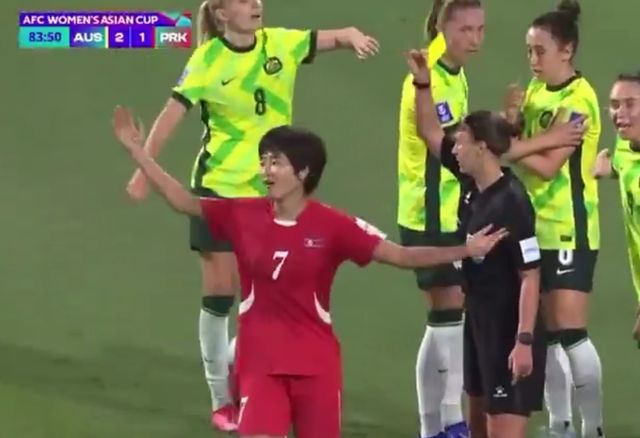 애초에 부심이 오프사이드 깃발을 들었지만 이후 비디오판독(VAR)을 거쳐 득점으로 인정됐다. 북한 선수들은 주심에게 항의하며 온필드리뷰를 요청했지만 받아들여지지 않았다. 이에 리성호 북한 감독은 거칠게 항의하며 경고를 받기도 했다.