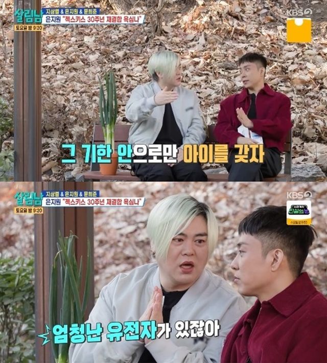 문희준은 은지원에게 "은지원의 엄청난 유전자가 있잖아"라고 2세 계획을 응원했다.