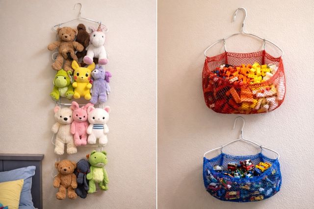 혹은 피규어 및 소품 바구니로도 활용할 수 있다. 옷걸이를 원형이나 사각형으로 구부린 뒤, 안 쓰는 양파망이나 세탁 망을 결합하면 벽걸이용 간이 바구니가 된다. 레고 블록이나 작은 자동차 장난감을 종류별로 분류하여 벽에 걸어두면 바닥에 물건이 발에 밟히는 사고를 방지할 수 있다.