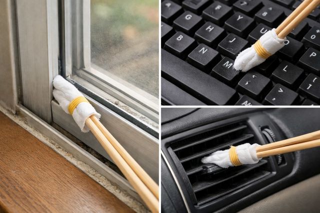 일회용 나무젓가락은 청소 도구로서 활용할 수 있다. 나무젓가락 끝부분에 물티슈나 얇은 헝겊을 감은 뒤 고무줄로 단단히 고정하면 손가락이 도저히 들어가지 않는 창문틀 구석, 키보드 자판 사이, 자동차 에어컨 송풍구 내부의 먼지를 손쉽게 닦아낼 수 있다. 면봉보다 힘을 전달하기 용이하고 길이가 길어 깊숙한 곳까지 도달할 수 있다는 점이 핵심이다.