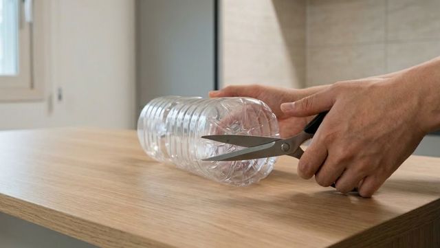 페트병 밑단을 자르려는 모습. AI가 생성한 자료사진.