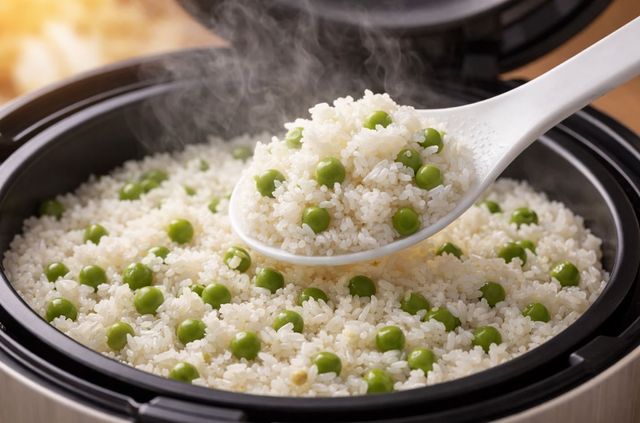 흰쌀밥에 완두콩을 넣은 완두콩밥 모습. 기사 이해를 돕기 위해 AI를 활용해 제작한 자료 사진입니다. 실제 모습과 다소 차이가 있을 수 있습니다.
